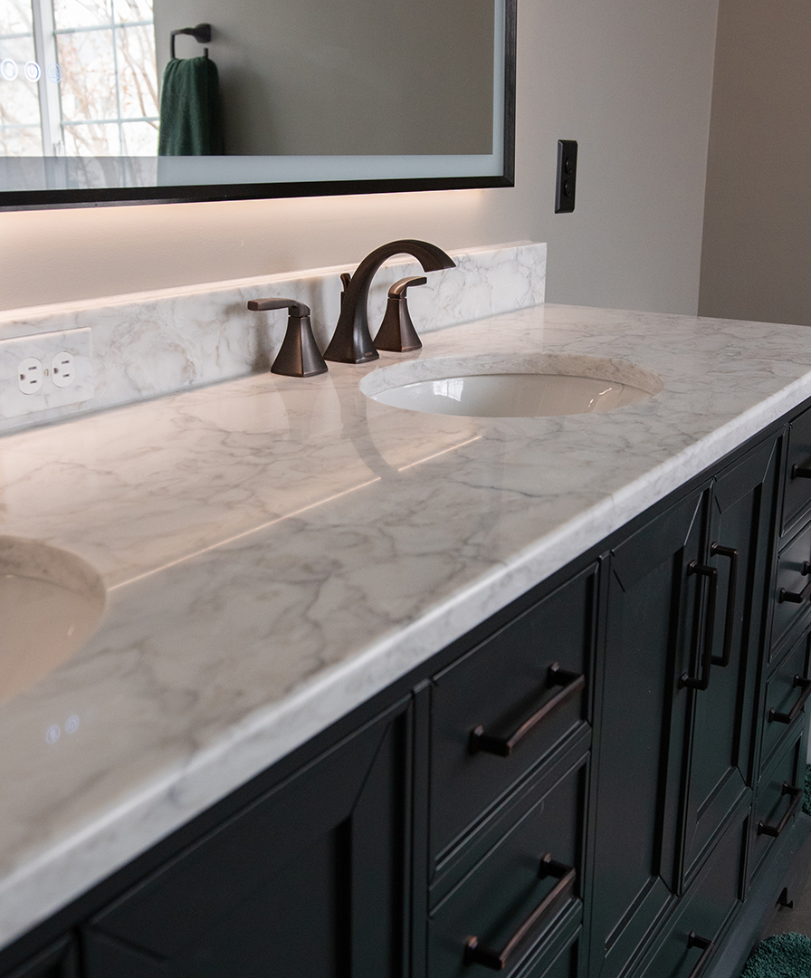 Sink countertop and shower seat - Quartz color is neptune •